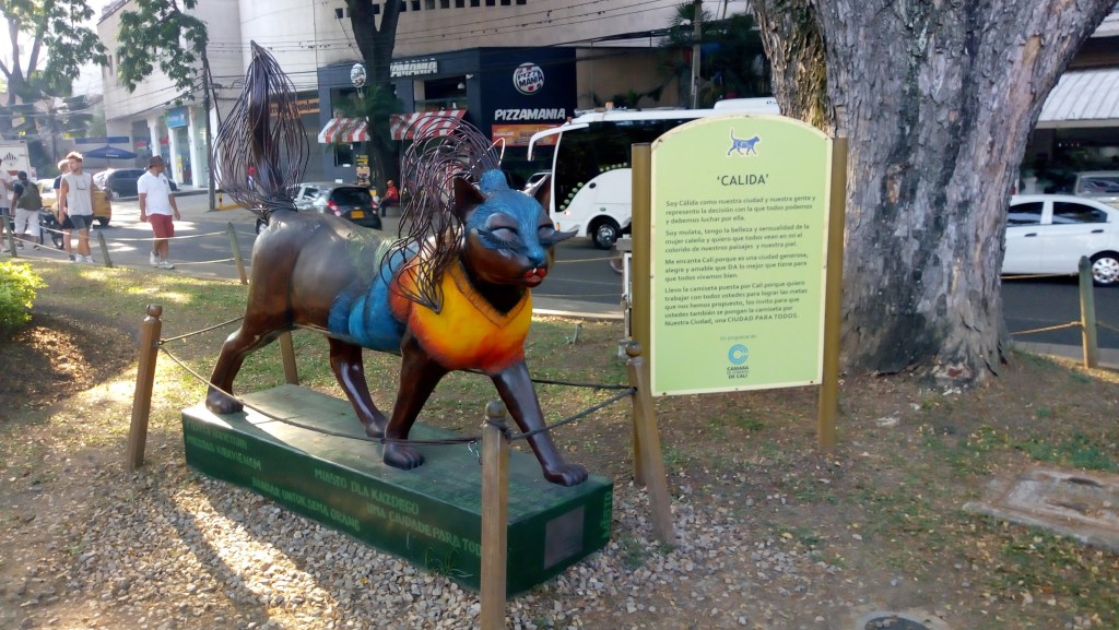 4.- Caminando por el Bulevar del Rió se llega al Parque del Gato y sus gatas, nombrado así por la escultura obra del maestro Tejada. Todo amante de los gatos no puede perderse esta visita que resalta el espíritu y amor de los caleños por los felinos, que pasean alegremente contoneando sus colas en los tejados de barro distintivos de la ciudad.
